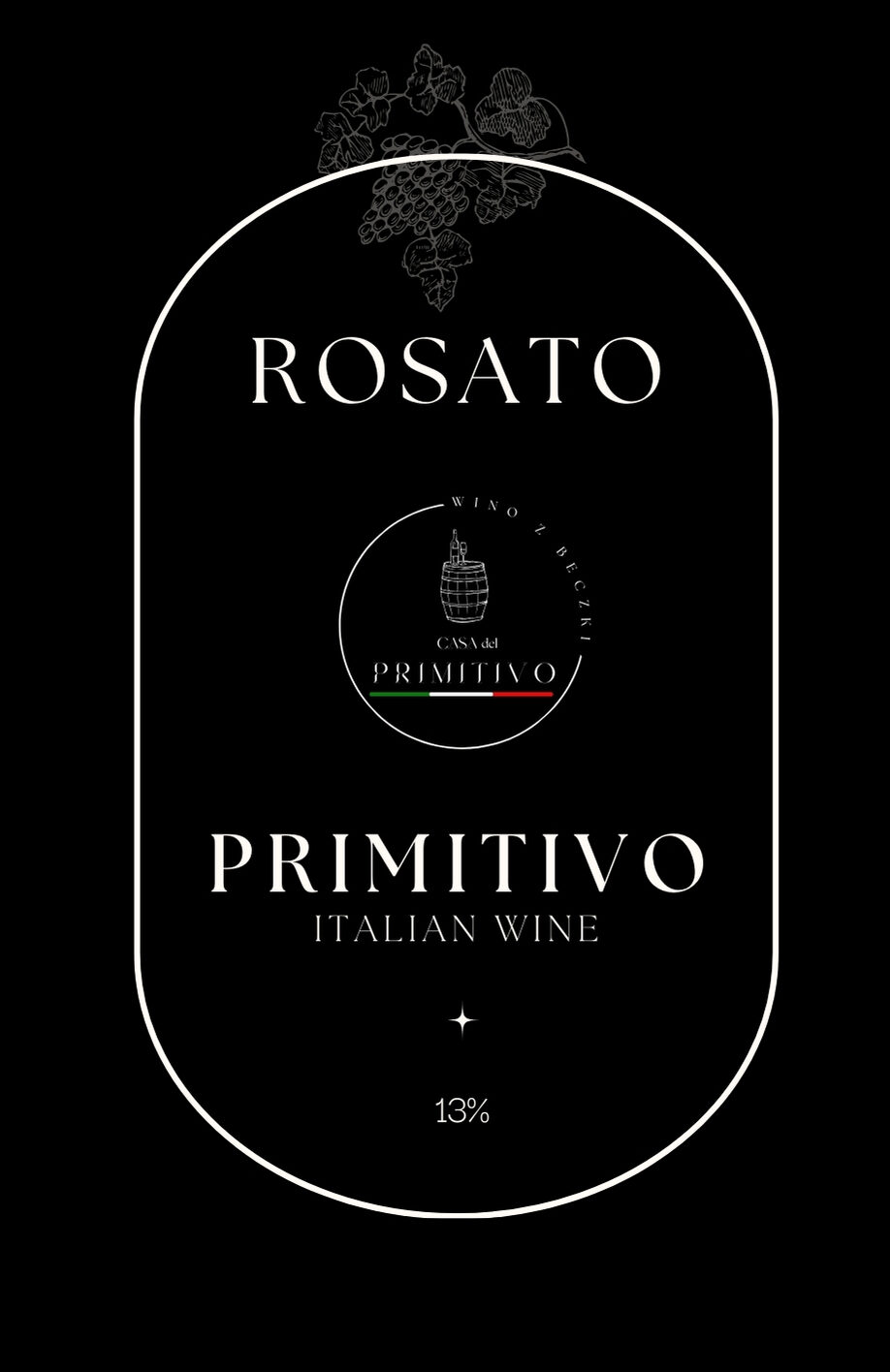 Wino różowe, półwytrawne produkowane ze szczepu Primitivo.