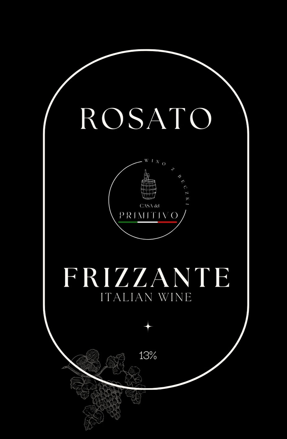 Wino różowe, półwytrawne, musujące produkowane ze szczepu Primitivo.
