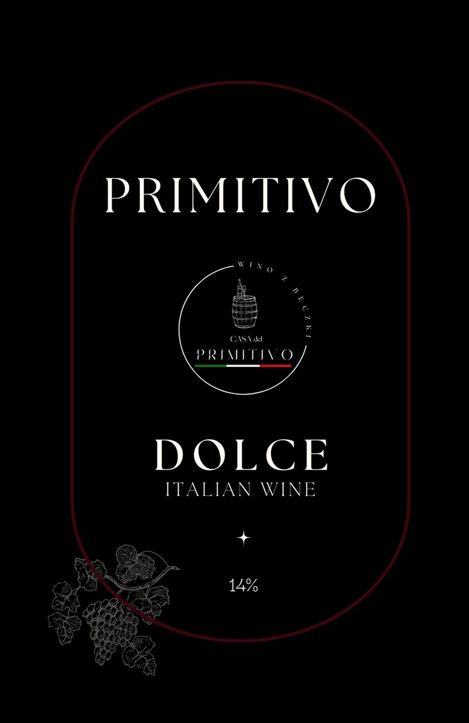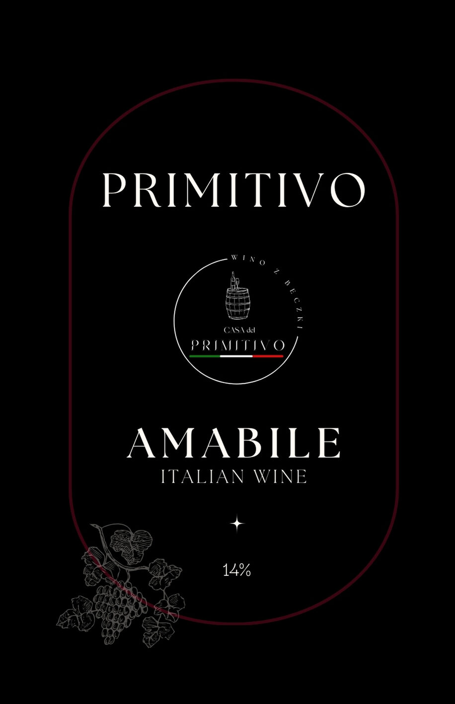Wino czerwone, półsłodkie, produkowane ze szczepu Primitivo.
