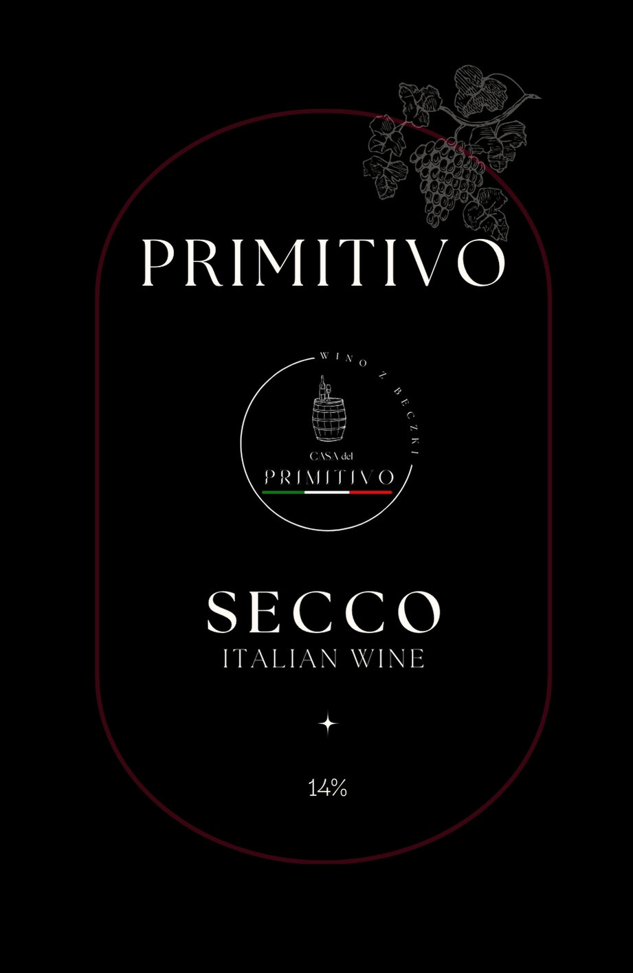 Wino czerwone, wytrawne, produkowane ze szczepu Primitivo.
