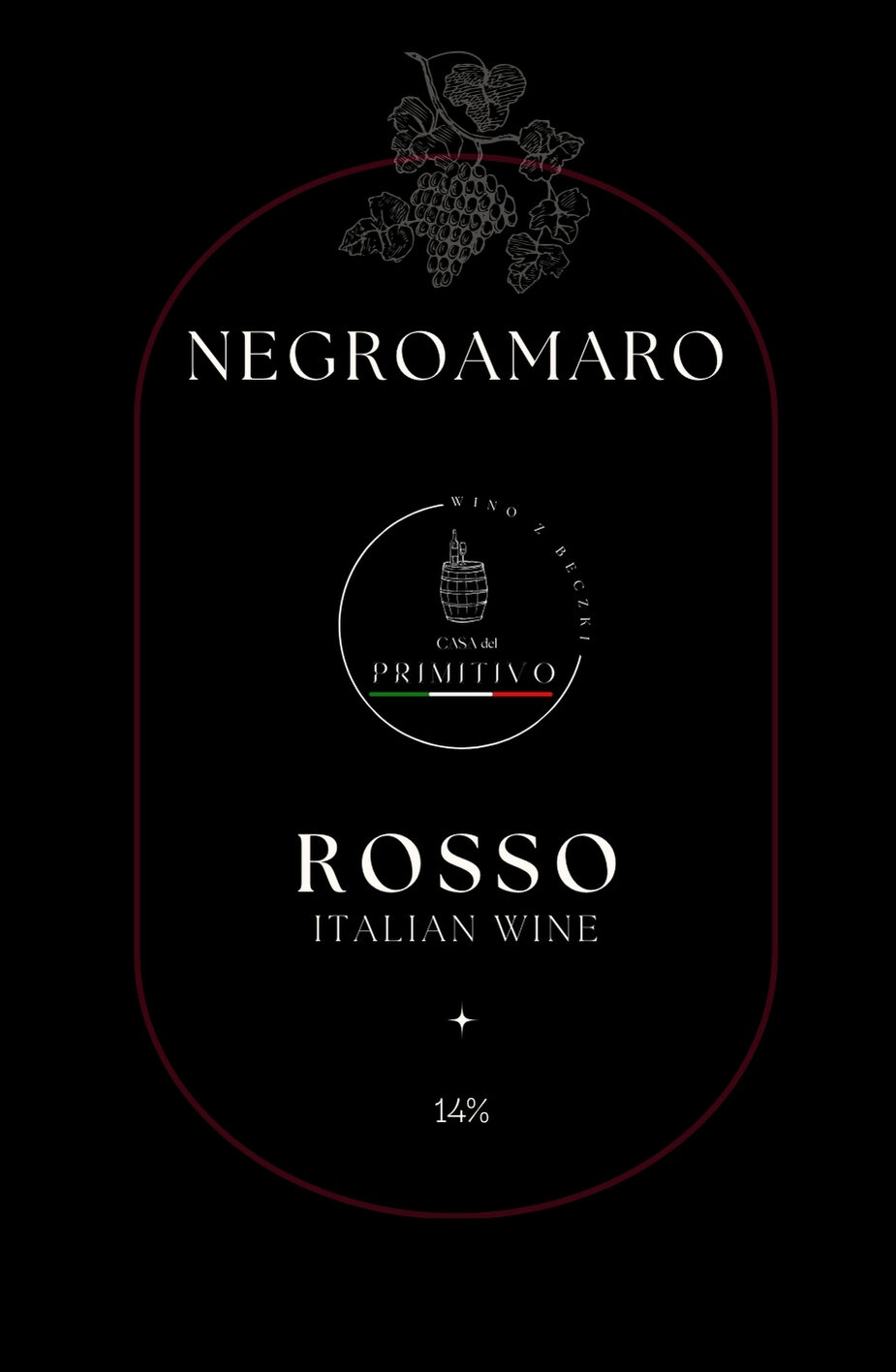 Wino czerwone, wytrawne, produkowane ze szczepu Negroamaro.